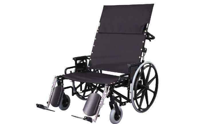 - Adjustable standard footrests with durable black footplates and elevating legrests for reclining wheelchair models