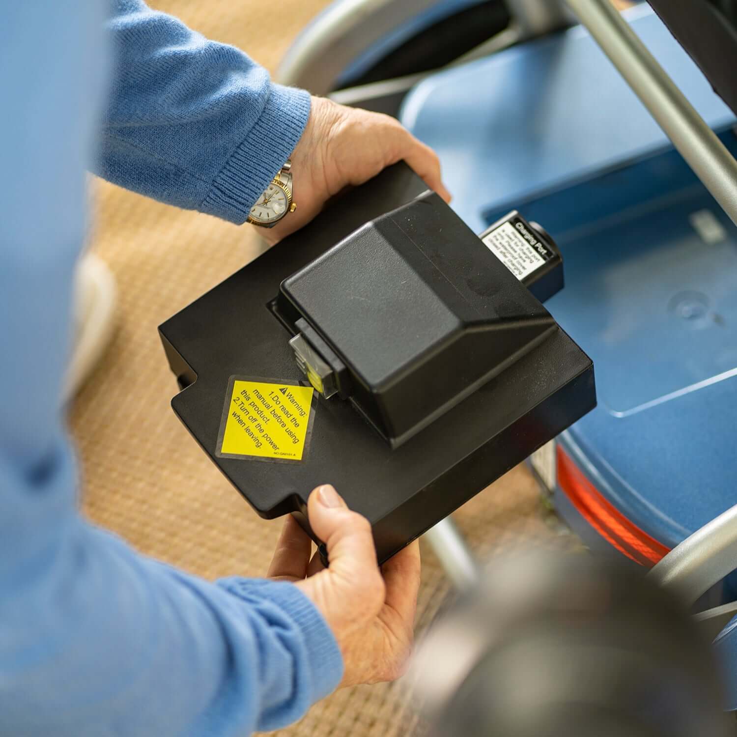 - Rechargeable lithium battery (24V 10Ah). Safe in standard 110V outlets